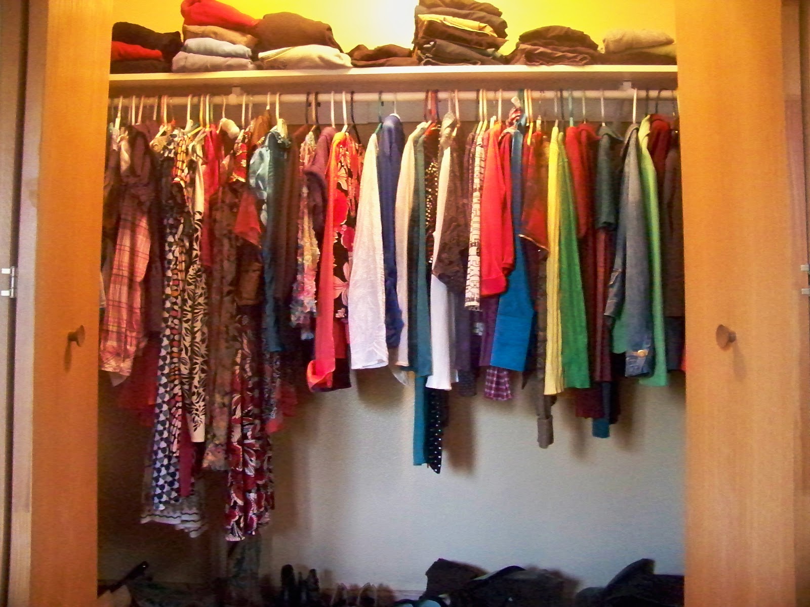 Because of my utter lack of organization, I discovered I own 7 pair of black yoga pants, 5 black cardigans, 4 pair of identical black leggings AND 80 dollars! My new organizational skills are going to help me save money - I'm sure of it. I organized my closet from left to right hats, belts, summer shirts, summer dresses, summer skirts, winter shirts, sweaters, blazers, winter dresses, and winter suits. Think of all the time I'm going to save - every morning I was going through EVERYTHING trying to find something to wear and now I can go right to the winter side.